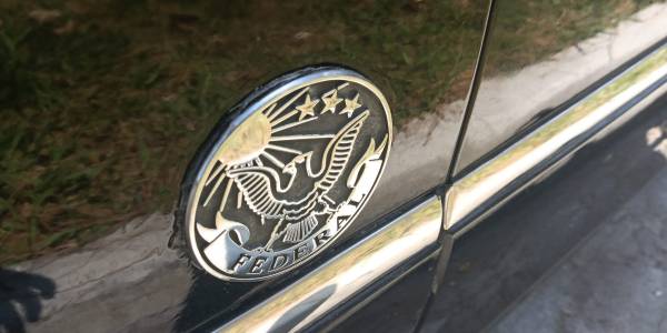 2005 year model black 120-inch Lincoln Towncar Limousine built by Federal