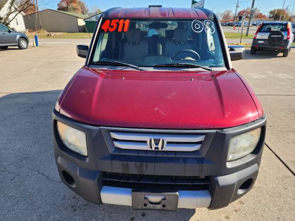 I have a 1 OWNER, 0 ACCIDENTS, 4WD, 2.4 ltr, 4 cylinder Honda Element LX here. Runs and drives good. No engine lights on. Body has no rust. Frame is very good on this one. Vehicle is clean inside and out. Air is cold. Heat is hot. Tires are good. Has PW, PL, PM, CC, TW, CD, SUNROOF. Good looking and driving rust free Honda Element here. 287K MILES. CLEAN TITLE IN HAND. MECHANICAL INSPECTIONS WELCOME. CASH/CREDIT CARD ONLY. NO PAYMENTS. NO FINANCING. The Car Store. 8550 E. Washington St. Indpls. IN 46219. Family owned and operated since 2000. 317-897-5606.