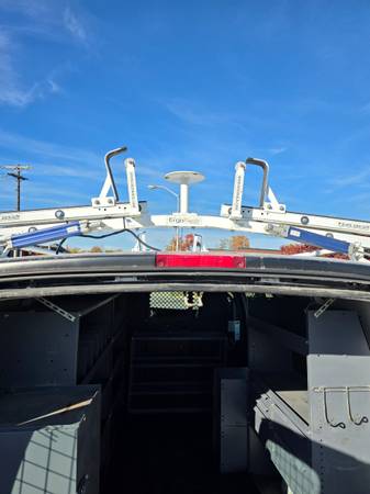 Expensive shelving units inside with lots of storage as well as a nice expensive hydraulic Ladder Rack (I can remove the shelves and ladder rack if you are wanting to use it for deliveries)