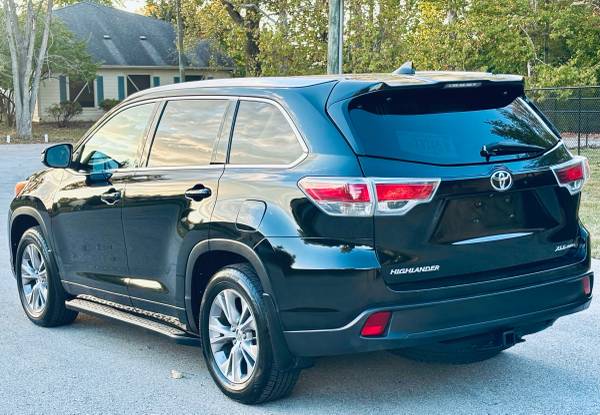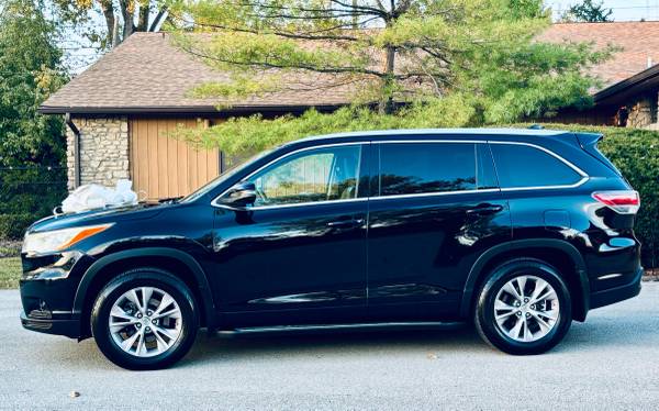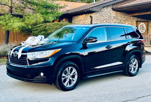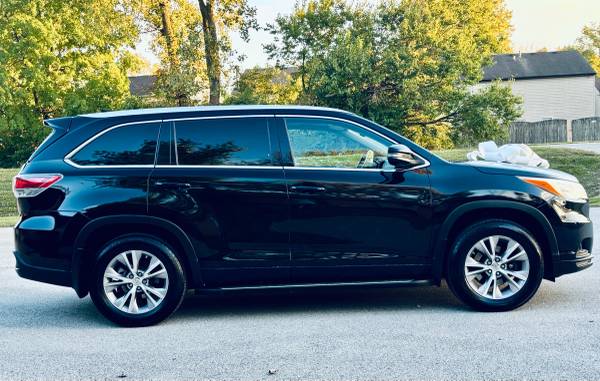For sale we have this clean pearl black 2014 Toyota Highlander XLE all wheel drive with 144k miles! Clean title, couple owners & good service history. Has the 3.5L V6 & it sounds great. Drives & shifts smooth, drives straight & runs out nice on the highway. All 4 tires are in good condition, brakes & suspension feel good too. No leaks, AC is cold & heat is hot. Body is clean & the black leather is in great shape. Non smoker & freshly detailed. The XLE is AWD, push start, sunroof, heated seats, touchscreen, Bluetooth, Navigation, back up camera, DVD player & seats up to 7. 3 month powertrain warranty! My name is Ty 317_795_4306 call or text me.