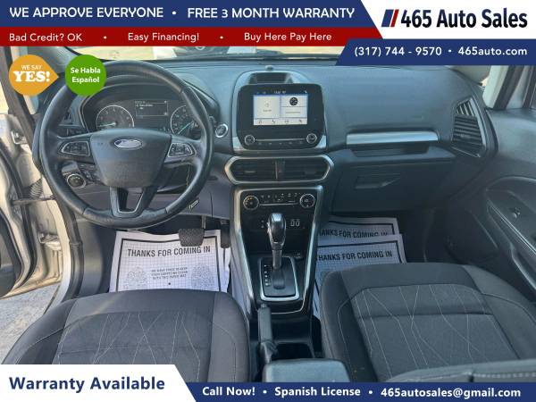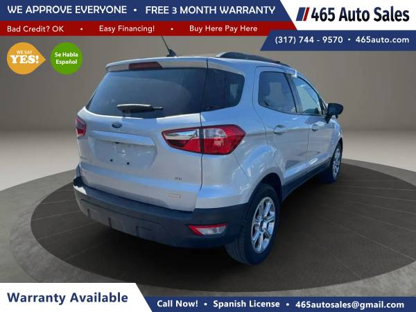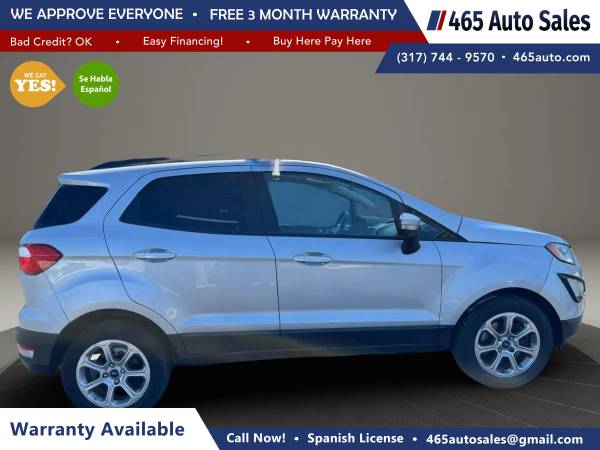 2018 Ford EcoSport SE Sport Utility 4D 3-Cyl, Turbo, 1.0L Auto, 6-Spd SelectShift FWD SUV Silver Gasoline $10,495.00 465 Auto Sales LLC 4717 W Washington St, Indianapolis, IN 46241 (317) 744-9570