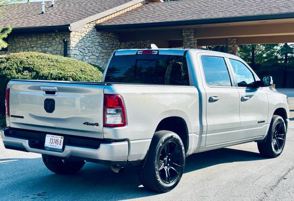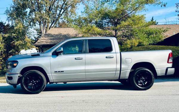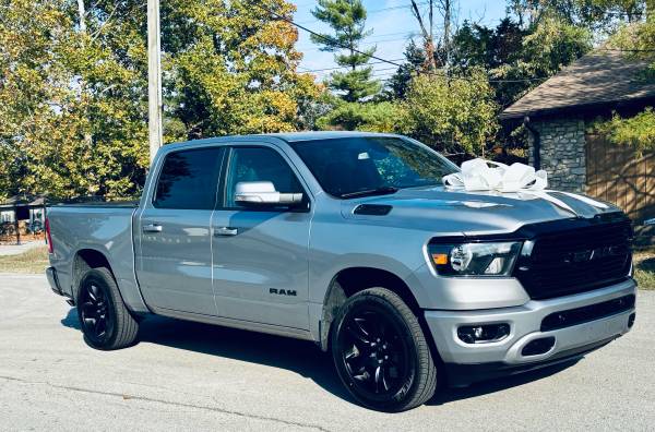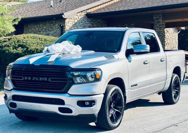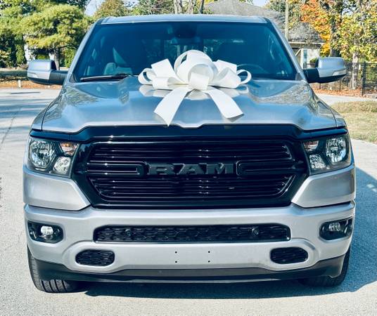Selling this super clean silver/ash metallic 2020 Ram 1500 BigHorn CrewCab 4x4 w/ 111k miles. This is a 1 Owner, No Accident, clean title & very well cared for Ram truck. Has new tires & a fresh oil change. The 3.6L V6 engine sounds excellent. The Ram drives & shifts very smooth, drives straight & runs out nice on the highway! No leaks, heat is hot & AC is ice cold. The body is very clean & looks great & the black premium cloth is on great shape no rips. Non smoker & freshly detailed. The BigHorn has a CrewCab, 5.7ft bed, towing, bed liner, push start, remote start, heated seats & steering wheel, 10 inch touchscreen, Uconnect, CarPlay, back up cam, front & rear sensors for safety, rear power sliding window & 20 inch tires & rims. 3 month powertrain warranty. My name is Ty 317_795_4306 call or text me.