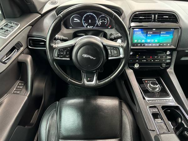 This is a gently used SUV with 11 Service history records. Very attractive inside and out with a perfect Luxury/Sport combination. It is powered by the 380HP Supercharged 3.0L V6 Engine with only 78K miles and a Automatic Transmission. What a fun vehicle to drive. 4 Drive modes with a paddle shifting option on the steering wheel as well. Offers many other great features such as Keyless Entry, push button start, Dual power heated seats, heated steering wheel with controls, touch screen, wireless phone charging, bluetooth and hands free, premium Meridian Surround System, Panoramic Sunroof, backup camera, parking sensors, lane keep and blind spot monitor and much more. You will absolutely love this F-Pace S.