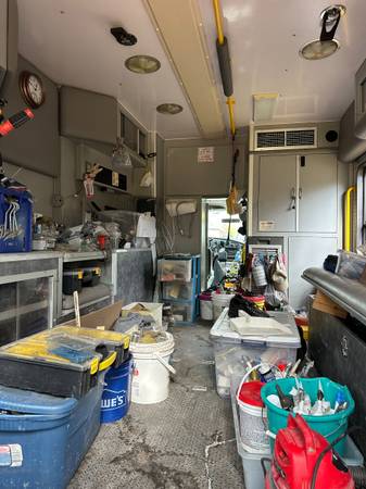 Newer engine, 81,410 miles Needs transmission work. The engine is a New Jasper rebuilt. Model —Ford E 450, ctwy/van. Heavy duty springs. There are numerous outdoor and inside doors and cabinets for...