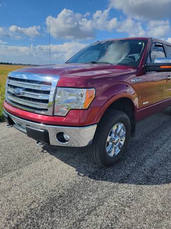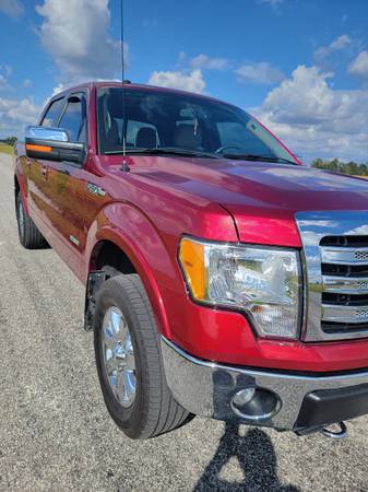 2013 F-150 Lariat Supercrew 3.5 Liter V6 EcoBoost Engine, 4x4 Gas truck, Red in color,