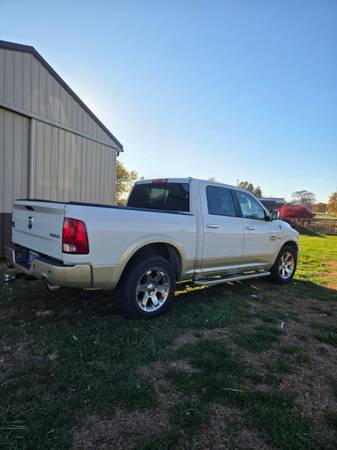 2011 Ram 1500 Laramie Longhorn. 4x4. Top of the line trim. Heated seats front and back. Rollback tonneau cover. Tow ready. Minor issues reflect the age. Codes on dash for TPMS sensor on right front wheel and for VVT solenoid ($50). Recent oil change and transmission flush with new shift solenoid pack (a common issue). $11,500 obo. Call or text John for more info. Montana number but located near Greensburg, IN.