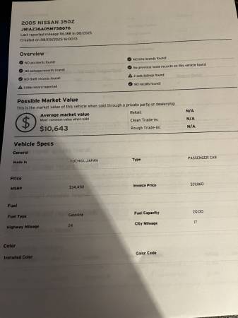 Selling my manual transmission 6 speed two-seater convertible 350z. Everything works. It runs and drives great. It has a new black convertible top. It has new tires on it. It has been well cared for and garage kept. The only reason I am selling is to buy a new corvette. No trades. Only serious inquiries. Three one seven, 908, fifty-four thirty-six. Clean title in hand. $8999.00 or best offer. No low balls.