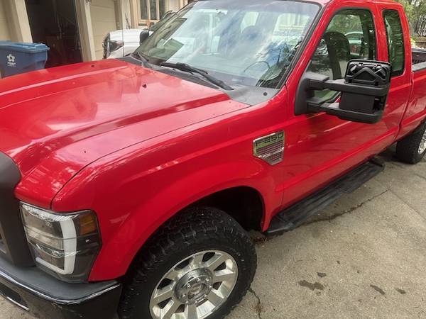 2008 Ford F250 - 4WD Extended Cab, 8 foot bed. Starts, Runs Excellent, no check engine light. Drives good. Looks good. Auto Trans., Cold AC, PW. New Turbos, New Shocks, New Batteries, New Brakes, New LED Headlamps. Good Tires. Tow package and controller. A few dings and scratches, some rust on cab corners, wheel arches. Great truck for contractor or landscaper. Ready to work
