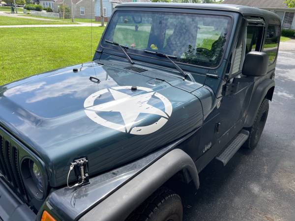 2006 TJ 4cl , 6 speed with "body off " frame restoration . Stainless steel brake lines , newer shocks, tires on ceramic coated rims and frame, LED lights , backup camera and CD player, cold ac , ceramic window tint, 1removable hardtop 1 bimini top 1 standard canvas top ; 1 set open tube doors 1 set standard frame doors, ; runs great with only 8k miles on rebuilt motor and only 127k on body
