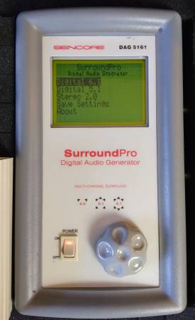 The DAG5161 'SurroundPro' Digital Audio Generator is a handheld multi-channel digital and analog audio generator that provides Stereo 2.0, Dolby 5.1 and DTS 6.1 surround, and PCM digital audio from industry standard outputs for testing audio systems and simplifying acoustic calibrations.