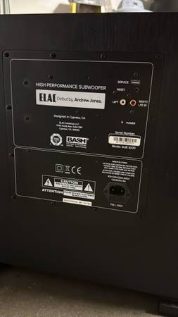 Lightly used ELAC Debut 2.0 SUB3030 — sounds incredible and works perfectly. Deep, clean bass with tight response. Used gently in a smoke-free home theater setup.
