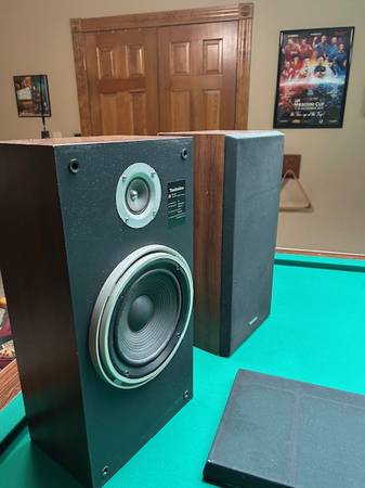 A pair of vintage Technics floor speakers. Model number SB-L31. These speakers have no issues and have been in my pet free, smoke free home. These are nice and solid.