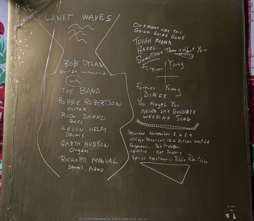 Planet Waves by Bob Dylan, released 1974, original VINYL album. Near pristine, still partially shrink wrapped. $15.