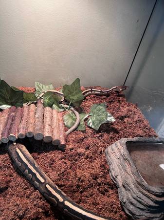 Female ball python with enclosure, lights and everything inside. $250 obo
