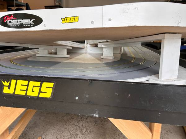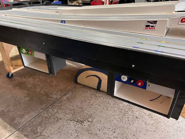 The track is currently disassembled, but with markings to help with reassembly. Father-in-law built this track for ours sons, but we moved homes and do not have a location to set it up.