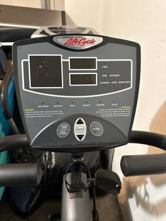 Excellent condition, barely used Life Fitness Recumbent bike. Screen and everything functions as it should. Text or call 317 7 50 6 12 1