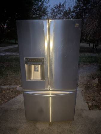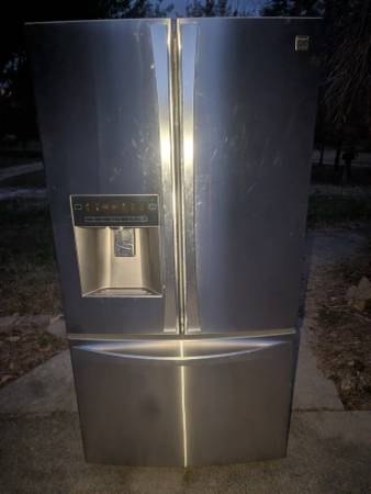 I believe this is a Kenmore Elite -- I'll add more info this weekend, but wanted to get the ad up. It just stopped working and we bought a new one. This one wasn't that old, though. I think it was probably a bad capacitor, but I didn't have a way to test that. The compressor would just click like it was trying to turn on. I think it has two capacitors, so it could be one or both, or something else. It is otherwise in excellent condition. The fridge is sold AS-IS. If no one wants to fix (or part it out) it then I'll take it to the scrap yard, but it looks like it should should have plenty of good years left in it.