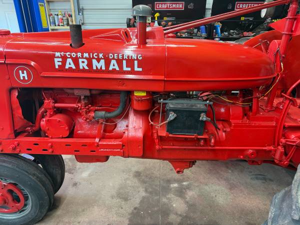 1940 Farmall H, everything works as it should. Fresh paint, oil change, hydraulic pump seal replaced, 12v starter, wheel weights, nice fenders. Muffler I have but not shown in pictures, I have it off due to height getting into my garage. Call if interested, too many scammers texting. Thanks for looking.
