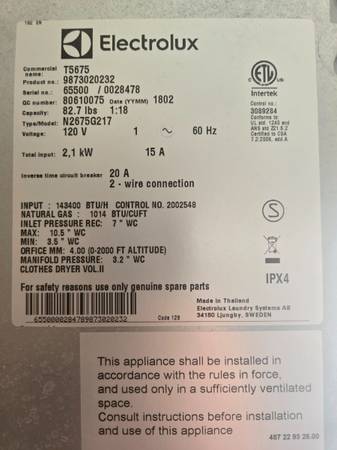 For sale: two 45 lb commercial Electrolux washers and one 81 lb Electrolux dryer — all in working condition.