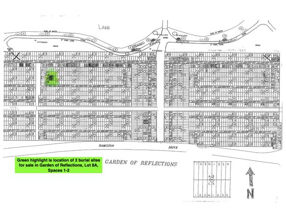Garden of Reflections, Lot 8A, Spaces 1-2. These grave sites overlook Patriot Lake, and are a short walk to the lake - see attached maps.