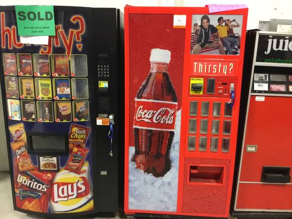 I buy sell trade and repair vending machines glass door coolers freezers restaurant equipment and more.