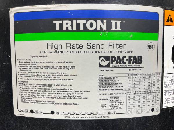 Pentair Triton Pool II Commercial Grade Sand Filter and Pentair Multi Valve Professionally removed in perfect working condition Could be easily repurposed as a water storage tank or rain water...