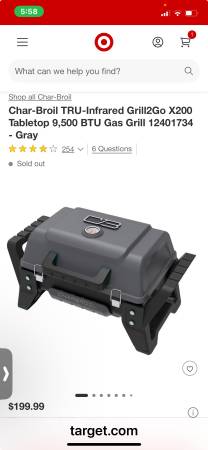 Brand New Char-Broil TRU-Infrared Grill2Go X200 Tabletop 9,500 BTU Gas Grill 12401734 Gray Dimensions 13.6 Inches (H) x 23.7 Inches (W) x 15.7 Inches (D) Located in Noblesville Just north of Costco...