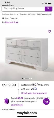Brand New Rosdorf Park Naima Dresser Dimensions 39'' H X 17'' W X 63'' D Located in Noblesville Just north of Costco next to Indy Premier Soccer Retails For $960 Came off the truck with a couple...
