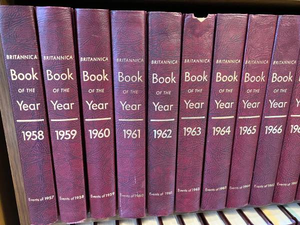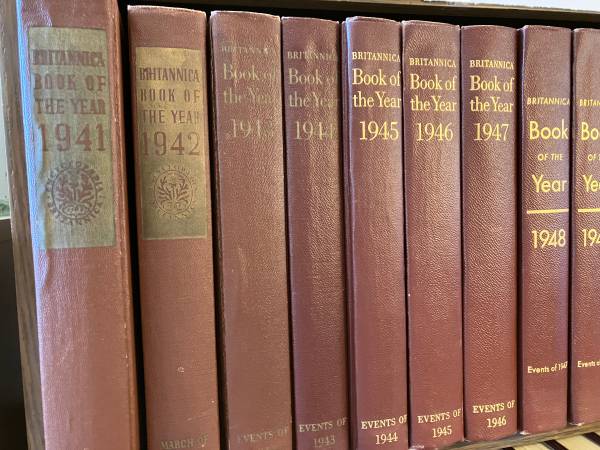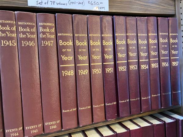 We have acquired a complete set of Britannica "Book of the Year" -78 Volumes from the years 1941-2018- a nice set!