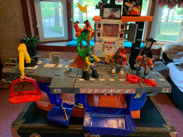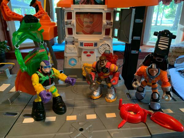 This is a classic vintage (90s) Rescue Heroes ship with three Heroes. Everything functions as it would if new. Command center voice command has 2 slip in panels with two scenarios per panel. All the lights work, speaker system works and the 3 Heroes all function as intended with their accessories. This a classic Fisher Price Heroes ship and characters. Make this a birthday or Christmas gift or add to your vintage collection.