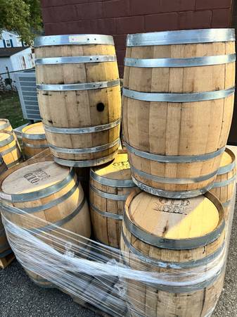 Used old 55 Bourbon Barrels that have been filled with bourbon and beer. 30 gal barrels. Located at Moontown Brewing Company.