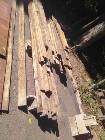 Ive also some 2x4, 2x6 & 2x8, 4x4 also. Average 4x4 is around 5' in length. 2x4 average 6'. Quite a few @ 10'. **Fencing wood or tree house build. Not treated from what I can tell. ALL wood for $75. FIRM ----Dont mind the TV or the Preen----