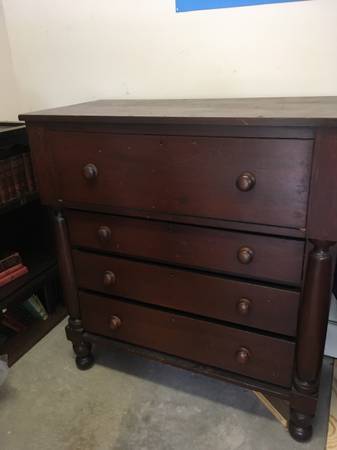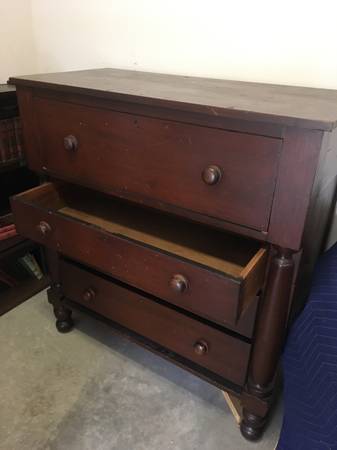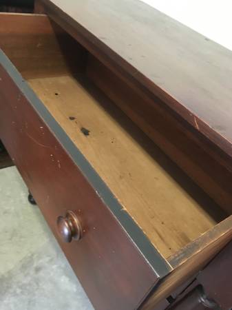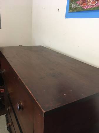 This dresser came over the trails from eastern Ohio via covered wagon. It has resided in Indiana for decades. This amazing dresser seeks a new family that will appreciate it and care for it.