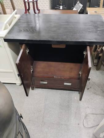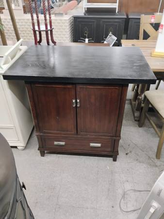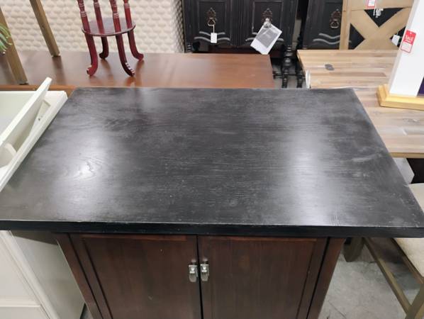 40 long by 26 wide 34 tall Black back and brown front and sides. Nice moulding at the back