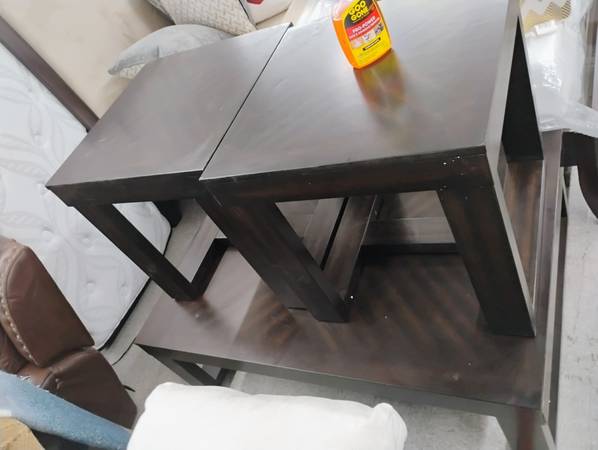 This set is in excellent shape. Never been used Side tables 24 by 24 by 24 Center table 52 by 36 by 17