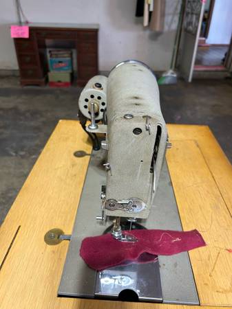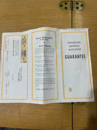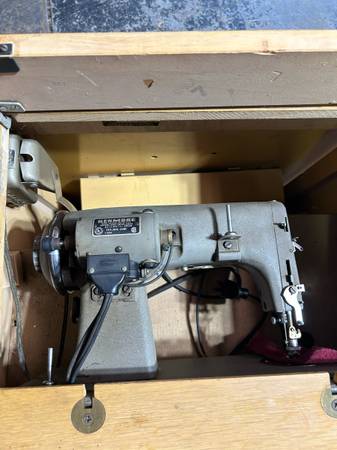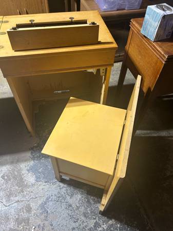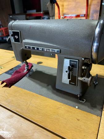 This vintage Kenmore sewing machine is a real jewel! Blonde mid-century modern style, the chair combines with the cabinet and has storage under the seat! Machine plugs in and runs but needs a good cleaning. The sewing machine itself is very sturdy, good for heavier fabrics likely! Also comes with extra accessories as shown. Cash only please! Pick up only please. Located on the south east side of Indy, 4537 Whirlaway Dr.
