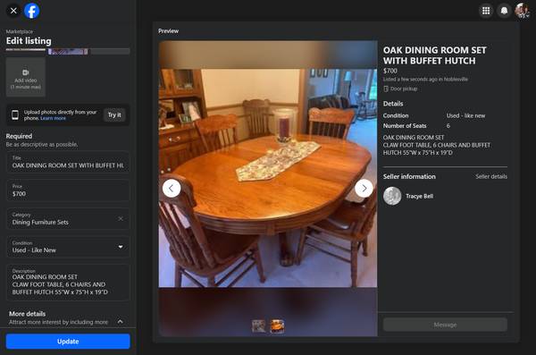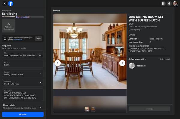 OAK DINING ROOM SET CLAW FOOT TABLE WITH 2 REMOVABLE LEAFS 6 CHAIRS AND BUFFET HUTCH 55”W x 75”H x 19”D