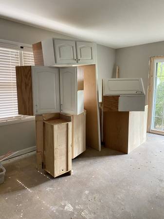 Take all for $400. Delivery not available. 2 Vanity with tops: 36" W and 24" W. Kitchen cabinets: Upper and lower cabinets.