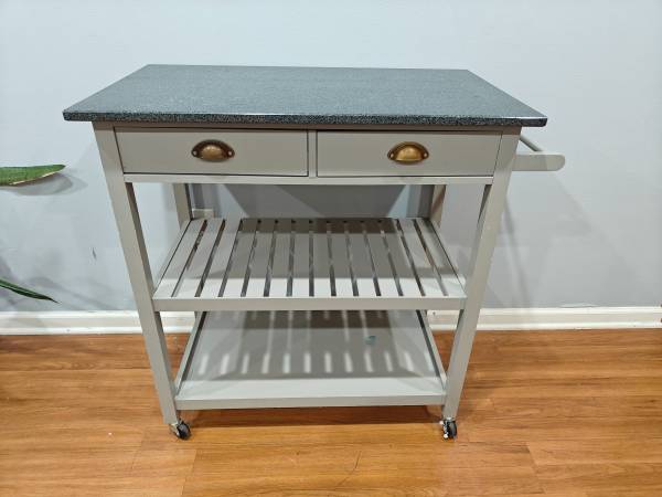 🔍 Search terms: granite top kitchen cart, rolling utility island, mobile prep station, wood frame kitchen cart, storage drawers, slatted shelf cart, granite countertop furniture, movable kitchen island