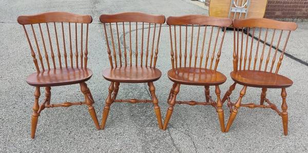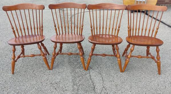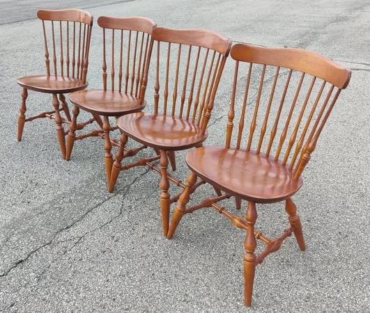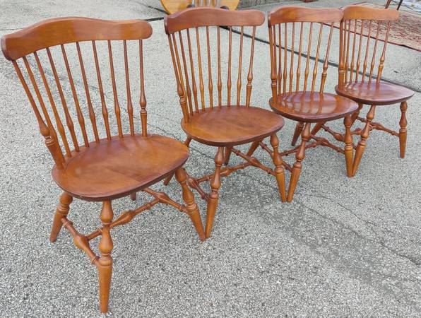 π Search terms: Nichols & Stone chairs, solid maple dining chairs, spindle back chairs, vintage dining set, heirloom furniture, farmhouse seating, traditional wood chairs, American-made chairs, high-end dining chairs, collectible furniture