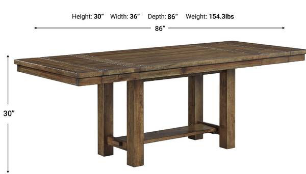 Dimensions with leaves: 36"W x 86"L x 30"H