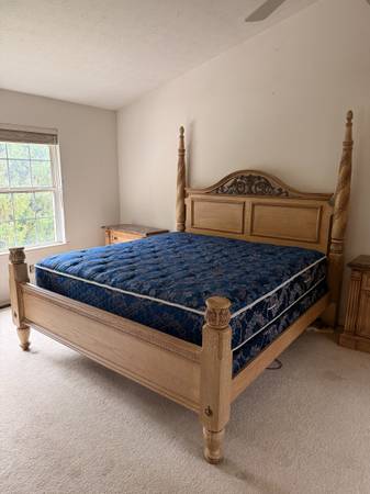Vintage Solid Wood Bedroom Set – Bed, 2 Nightstands with Marble Tops, Matching Dresser – Excellent Condition