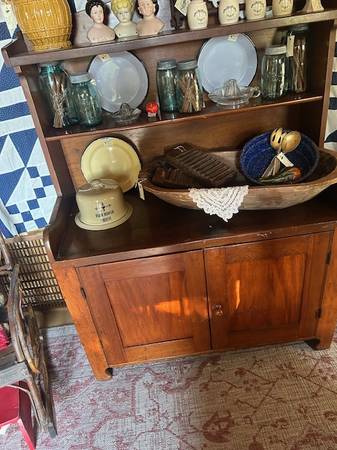 Outstanding and sturdy primitive hutch from the early 1900s. It's in excellent shape and would look great in any kitchen or dining room. The doors shut and latch well. it's 42" wide, 21" deep &...