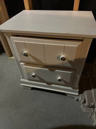 Twin bed headboard, footboard, mattress. Also includes one night stand. Has some markings on it but definitely has some life left.