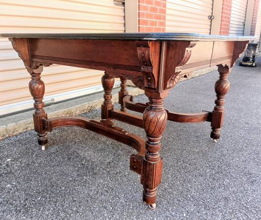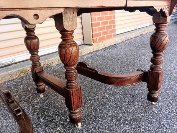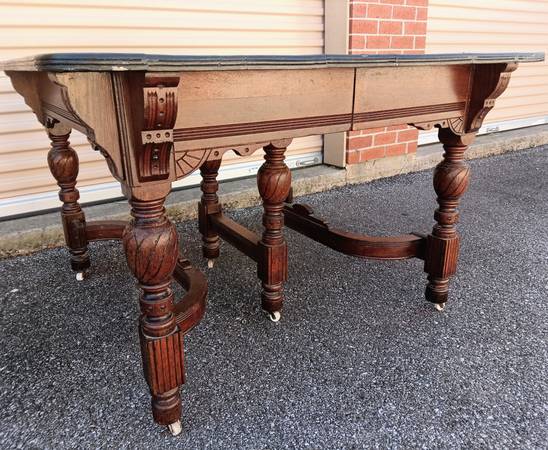 Impressive Antique Dining Table with Leaves, Ornate Woodwork, and Porcelain Casters - Extends to 8 ft