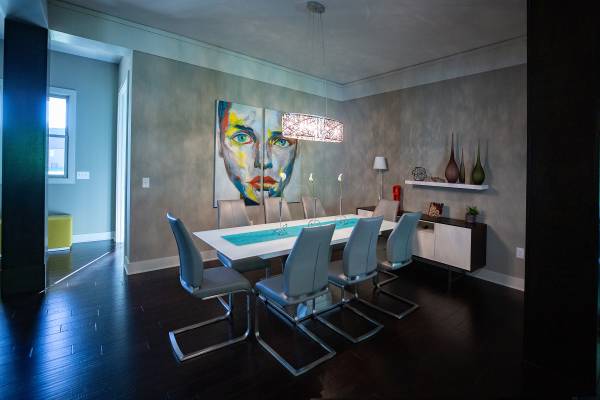 This Maday Table by NCA Design is a gorgeous addition to your home. Beautiful Polished Stainless Steel and Leather Dining room table with chairs. Purchased brand new modern dining or kitchen table with 8 chairs. The leaf is included to make this an extendable dining room table that seats up to 12. This like new metal base and white table top with metal and white leather matching chairs are art in your home. They are comfortable and luxurious modern, contemporary style purchased from Houseworks Indianapolis. I need to sell these as soon as possible. Cash only, pick up from our storage unit. Call/text 31765zero03zero4.