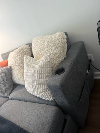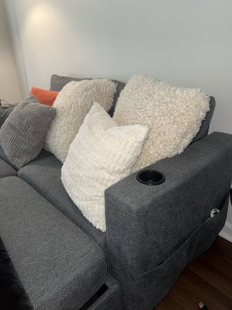 Lightweight Modular 6-Piece Sectional with 4 total pockets for storage, two charging ports, and two cup holders! Each seat has ample amount of storage underneath and removable seat/pillow cushions for washing purposes! Both body and accent pillows shown (dark gray only) will be sold.