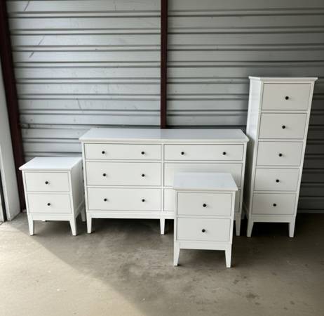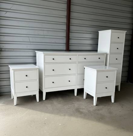 The set is in good condition. 2 nighstands, 1 tall 5-drawer dresser, and 6 drawer dresser. Everything is in great-condition and has smooth drawers Option-for-delivery is available.
