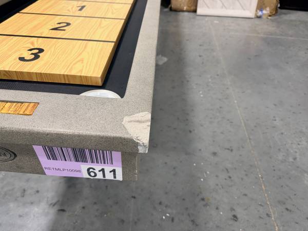 Came off the truck with damages to the concrete corners (does not effecct the structure) and missing the pucks which can be ordered online.