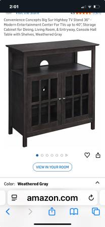 Brand New Convenience Concepts Big Sur 36"Weathered Gray Wood TV Stand Fits TVs Up to 40" with Storage Doors Dimensions (W) 36 in. x (D) 15.75 in. x (H) 36 in. Located in Noblesville Just north of...